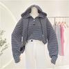 Kapuzensweatshirt Damen Dünn Locker Übergröße Mode Gestreifte Jacke Sport Strickjacke