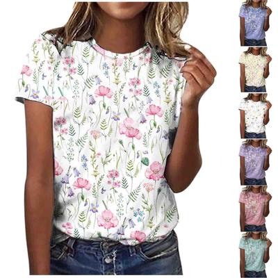 Damenmode, lässig, kurzärmelig, Blumendruck, Rundhalsausschnitt, Pullover, Bluse