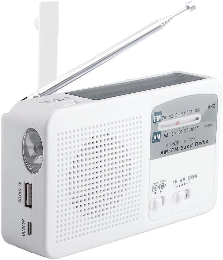 AM / FM Radio (Breitband-FM-kompatibel): Dieses Notfallradio unterstützt AM (520-1710 kHz) und FM (76-108 MHz) Frequenzen, die einen breiten Empfangsbereich und die Möglichkeit bieten, Sendungen über verschiedene Frequenzbänder zu empfangen. Es kann lokale Notfallsendungen, Wettervorhersagen und Rettungsinformationen umfassend empfangen und so im Falle einer Katastrophe wie eines Taifuns, Erdbebens oder Tsunamis ausreichend Reaktionszeit gewährleisten.. Es verfügt außerdem über eine um 180 Grad drehbare Antenne für außergewöhnlich hohe Empfangsempfindlichkeit.. Die Antenne kann für verbesserten Empfang und zur Justierung ausgefahren werden.