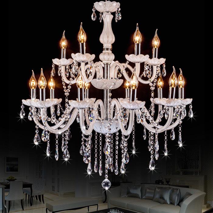 Europäischer LED-Kristall-Kronleuchter - Romantische weiße Pendelleuchte für Wohnzimmer, Schlafzimmer oder Esstisch