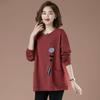 Baumwollpullover Damen Herbst und Winter Lässig Locker Übergröße Langärmlig Bedruckt Mittellang Oberteil