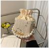 Pearl handbag women's 2025 new trendy small square bag fashion chain shoulder bag summer Internet celebrity woven bucket bag