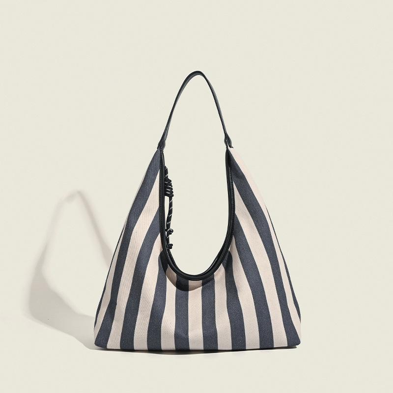 Niche Slack Canvas Striped Bag – Stilvolle Vintage-Achseltasche, ideal für Studenten und Pendler, große Tragetasche, Schultertasche