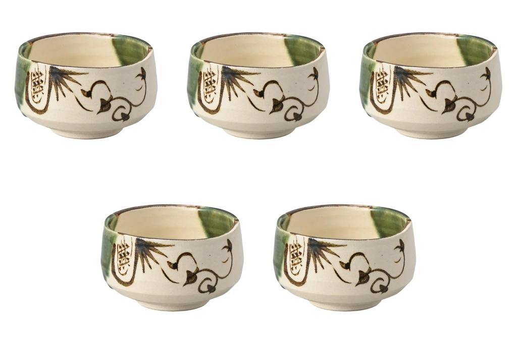 Set aus 5 Oribe-Muster Matcha-Schalen x Keramik-Matcha-Schalen von Setomonohonpo [11,5 7,5 cm]