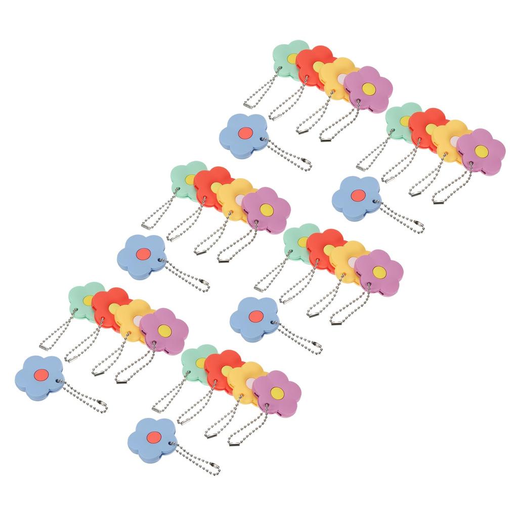 Specifications Shape: Flower Material: PVC Diameter: 42mm/1.65inch Color: Orange, Purple, Yellow, Green, Blue Package List: 30 x Key Cover Tags (6 of each color)