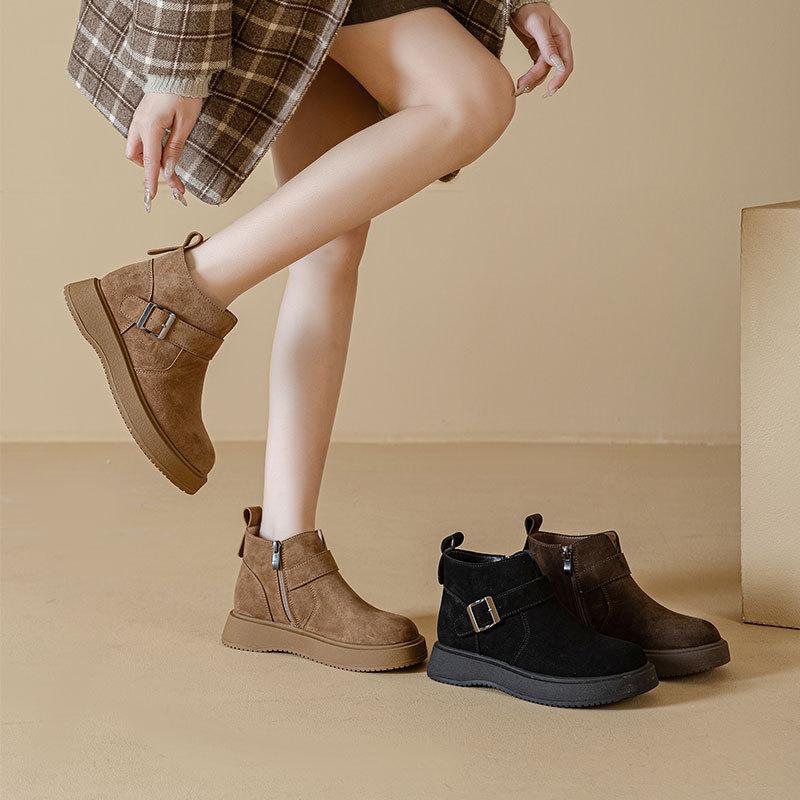 Schuhe mit dicker Sohle, Retro-Stiefel, Damen Herbst- und Winter-Neuer Stil Fleece-Schuhe, Lässige und vielseitige Stiefeletten