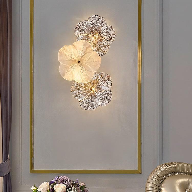 Elegante Fünfblättrige Kristallblumen-Wandleuchte für Schlafzimmer und Wohnzimmer