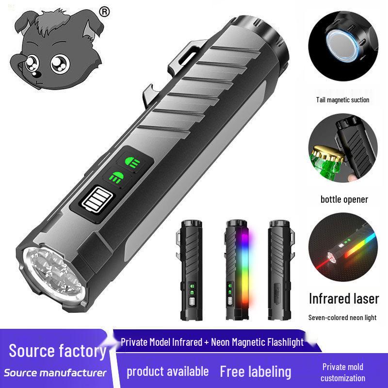 High-Intensity Black Aluminum Flashlight with Colorful Neon Light and Long Battery Life: Outdoor Multifunctional Torch