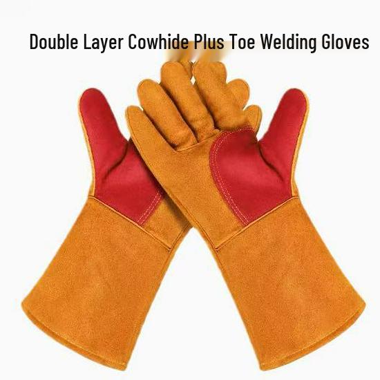 Hitzebeständige Lange Schweißhandschuhe aus Rindsleder - Feuerfest, Doppellagig, Verbrühschutz, Verschleißfest