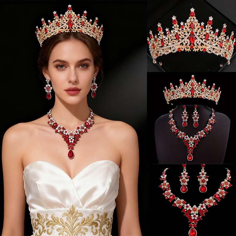 Brautschmuck Halskette Ohrringe Hochzeit Diamantbesetzt Blume Schmuck Kleid Hochzeitskleid Krone Fassung Accessoires
