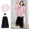 Damen Sommer Top & Hose Set mit floralem Tintenprint