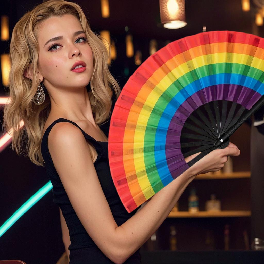 Regenbogen Faltfächer Kunststoff Tanzaufführung Fächer Rollenspiel Hochzeitsrequisite Dekorativer Fächer