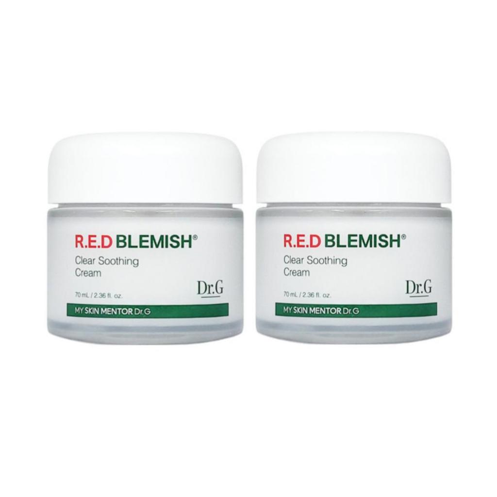 This 1+1 value set of Dr.G R.E.D Blemish Clear Soothing Cream features a lightweight, refreshing gel-cream formula designed to help provide a calmer and more comfortable-looking complexion.