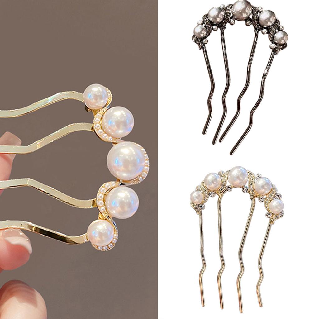 Moderner minimalistischer Haarstab mit Perlenverzierung, multifunktionale U-förmige Haarnadel für lässiges oder Hanfu-Styling