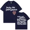 Kanye West Herren- und Damen-T-Shirts mit Gravur und Druck, Lucky Me I See Ghost bedruckte Freizeithemden, Mode Baumwolle Kurzarm