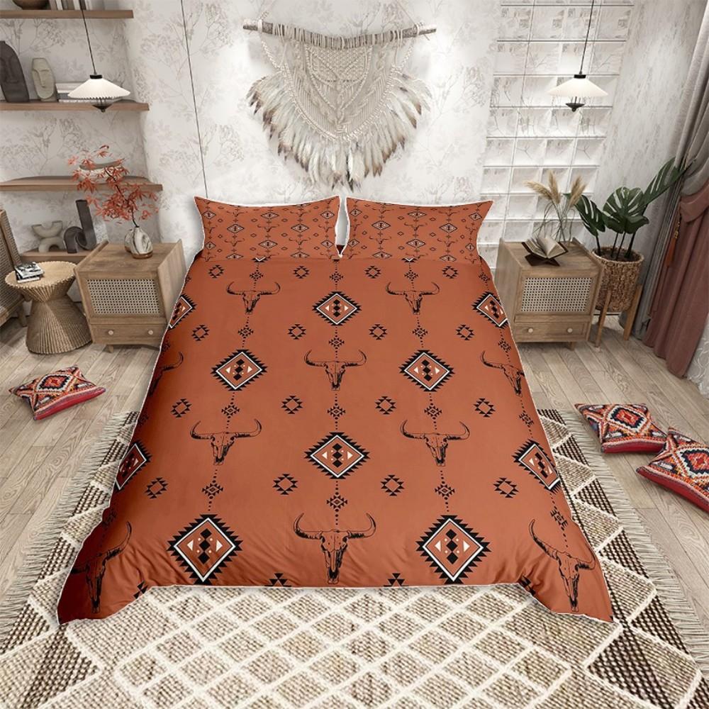 Homewish Mandala Azteken Erwachsene Bettbezug Set, Tribal Hippie Streifen Abstraktes Bettwäscheset, Western Schafsschädel Bettset