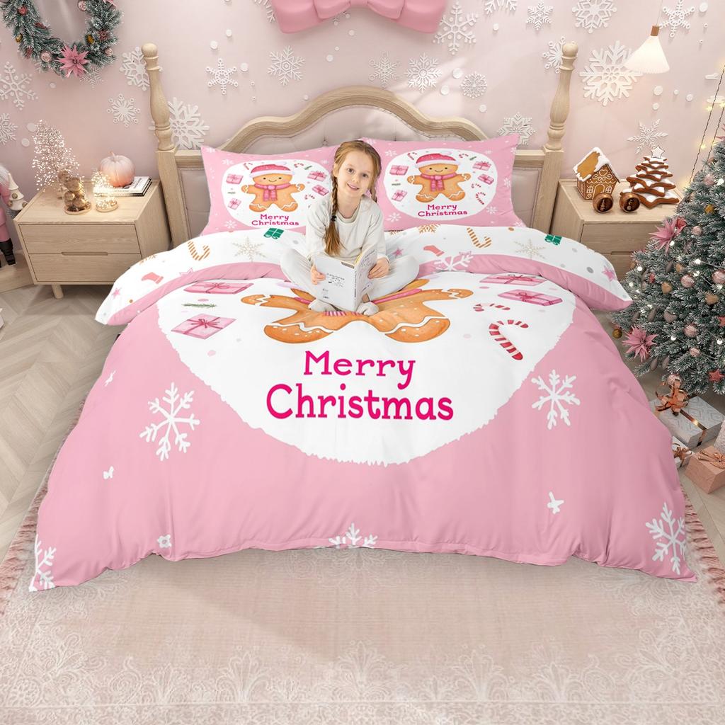 Homewish Kawaii Lebkuchen Bettbezug-Set für Mädchen Jungen, Weihnachtsbaum Weihnachtsmann Bettdeckenbezug-Set, Schneeflocken Bettwäsche-Set