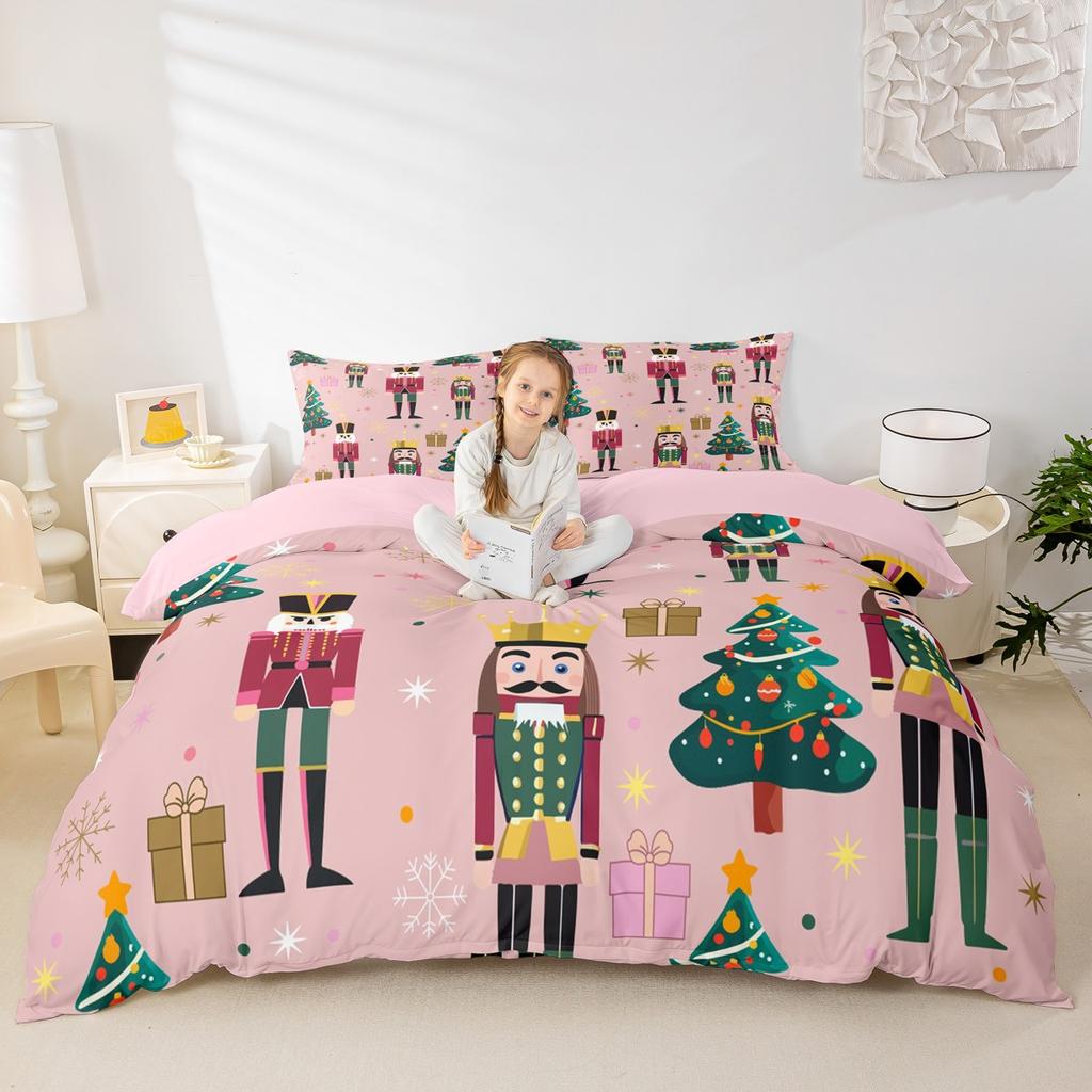 Homewish Frohes Neues Jahr Bettbezug-Set für Kinder 2-teilig/3-teilig, Fröhliche Weihnachten Xmas Bettwäsche, Nussknacker Weihnachtsmann Bettdeckenbezug
