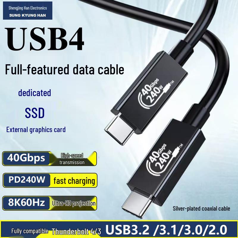 USB4 Thunderbolt 4 High-Definition 8K Kabel, 40G Datenübertragung, 240W Dual Typ-C, Versilbertes Koaxialkabel