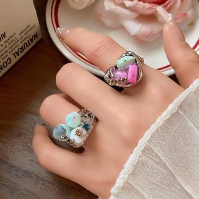 Stapelbare Türkisringe Strass Western Geometrischer Ring Glas Blumenring Valentinstagsgeschenk