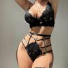 New Pure Desire Lace Hollow Perspective Belt with Waist Chain Sexy Women's Underwear No Steel Rim Hot Girl Bra Set