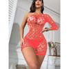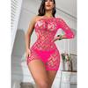 European and American Women's Hot Pressed Diamond Single Shoulder Single Sleeve Sexy Hollow Out Large Mesh Hole Sexy Lingerie