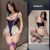 Sexy Lingerie French Lace Jumpsuit with Cross Gathering Hollow Out Sexy Pure Desire Without Taking Off Waist Jumpsuit