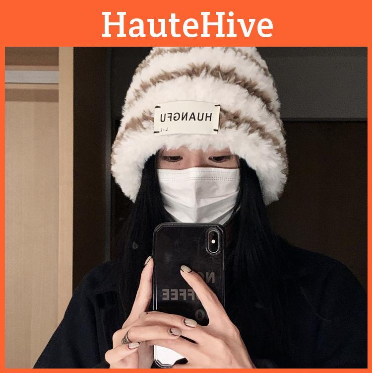 Fashionable Warm Knit Hat For Women Trendy Fluffy Beanie With Cute Bear Patch