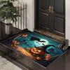 Halloween Themen Fußmatte mit gruseligen Kürbis Fledermaus Hexen Mustern Weicher dekorativer Eingangsteppich für Zuhause Innen Halloween Deko