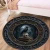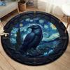 Rabe und Vollmond Runder Teppich Gotischer Hexen-Teppich mit Himmlischen Sternen und Botanischen Akzenten für Dunkle Boho Heimdeko Matte