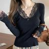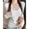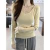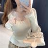 Aprikosenfarbenes Spitzenlangarmshirt für Damen-Herbstbekleidung, kann außen getragen werden, schlank und dünn, reines Wunsch-Unterhemd, gestrickter Pullover