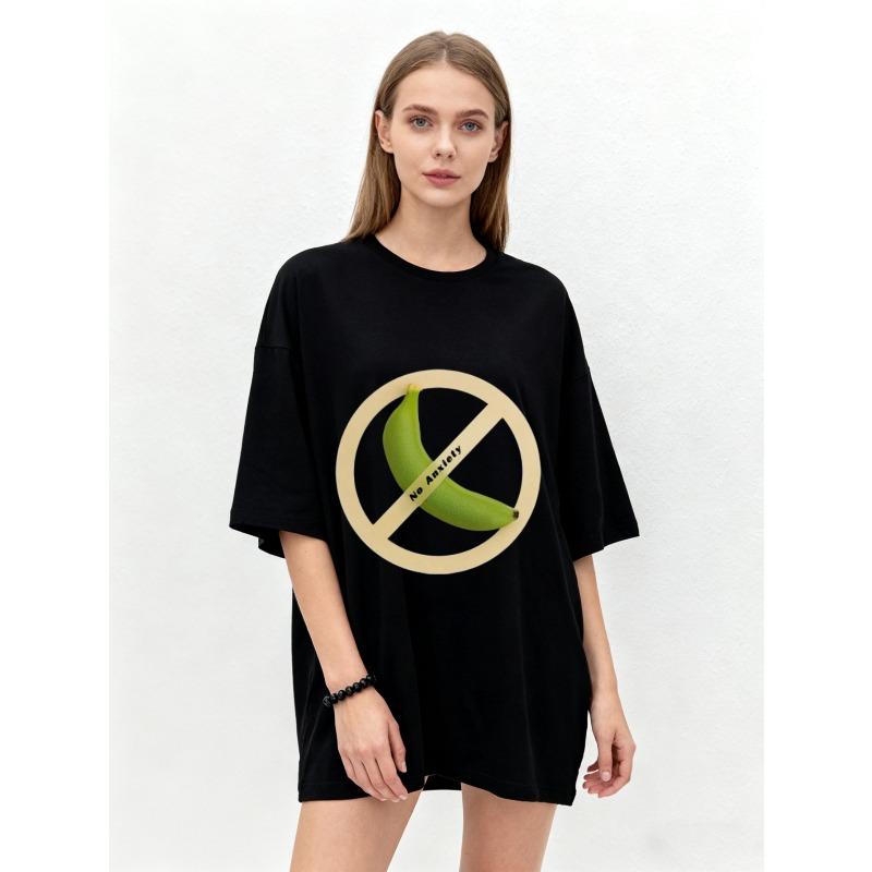 Übergroßes T-Shirt Schwarze Banane No Anxiety Print Grafik-T-Shirt Lässig Streetwear Mode Top für Damen und Herren