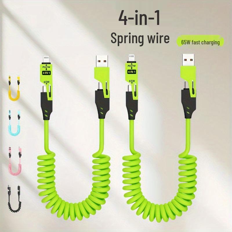 Spring Multi-Head Fast Charging Data Cable - 4-in-1 Two-to-Two for Car Use