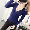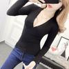 Reine Begierde sexy gekreuztes Langarm-Strickoberteil Damen Frühling und Herbst neu Taille und dünn hochwertiges Temperament Basic-Shirt