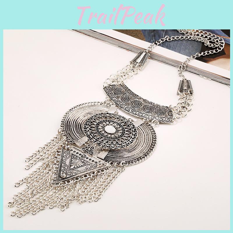 Tassel Necklace Long With Multi Layer Alloy Pendant For Trendy Retro Outfits