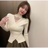 Cross-neck neck knitted sweater women's autumn and winter irregular unique chic top with sweater bottoming shirt