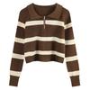 olo neck striped knitted sweater early autumn new women's clothing design sense short unique chic clothes