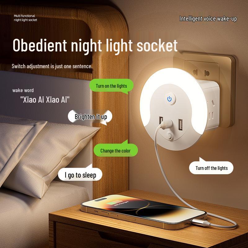 Multifunktionaler USB Smart Voice Cube: Kabelloses Nachtlicht & Steckdosenleiste für Zuhause oder Büro