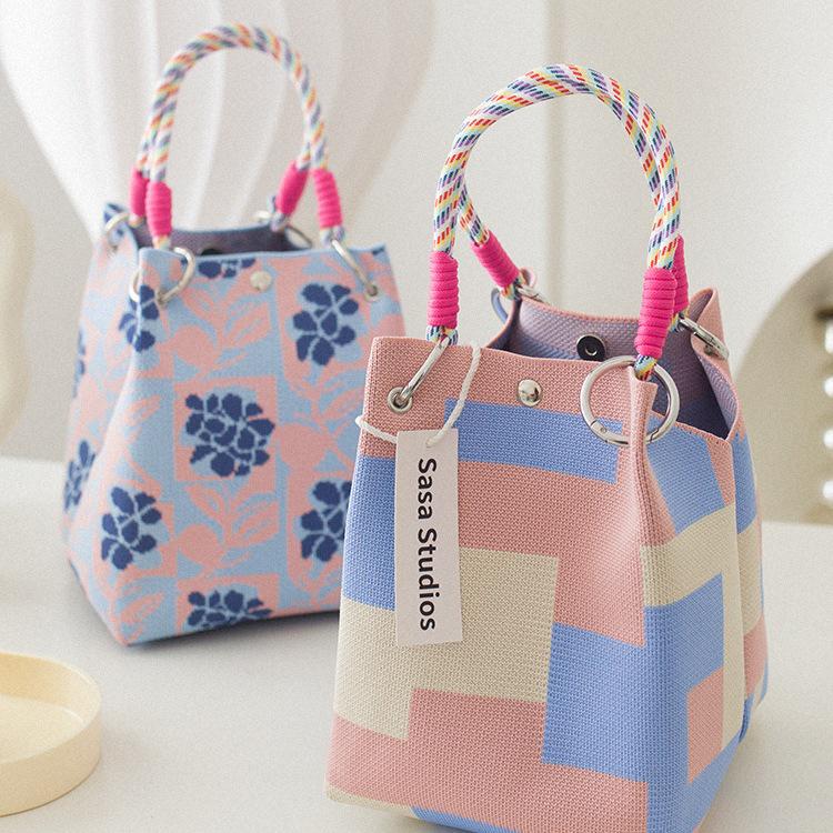 Stilvolle japanisch-koreanische Strickhandtasche: Große Tragetasche & Tragbare Pendel-Quadrat-Tasche
