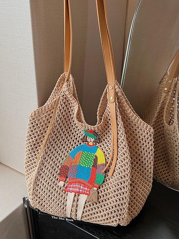 Damen geflochtene Stroh-Schultertasche - Nischenmarkt, Lässiger Stil, Hohlmuster für Urlaub oder Pendeln