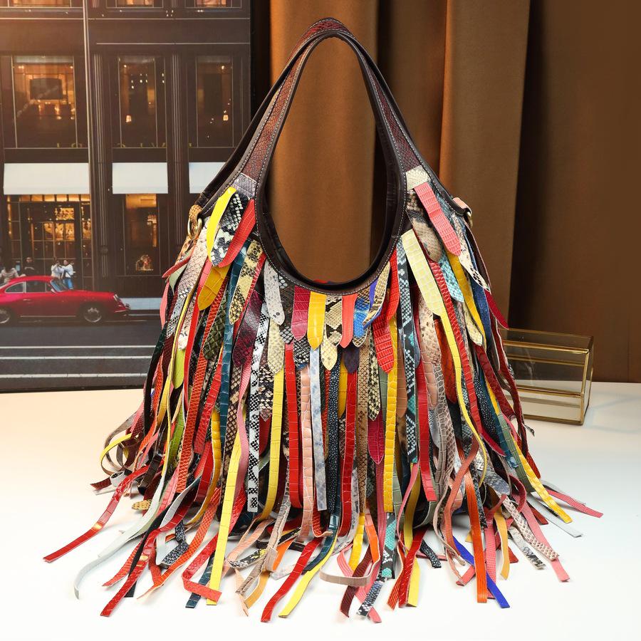 Mehrfarbige Quastenstreifen Umhängetasche aus Rindsleder mit großem Fassungsvermögen