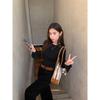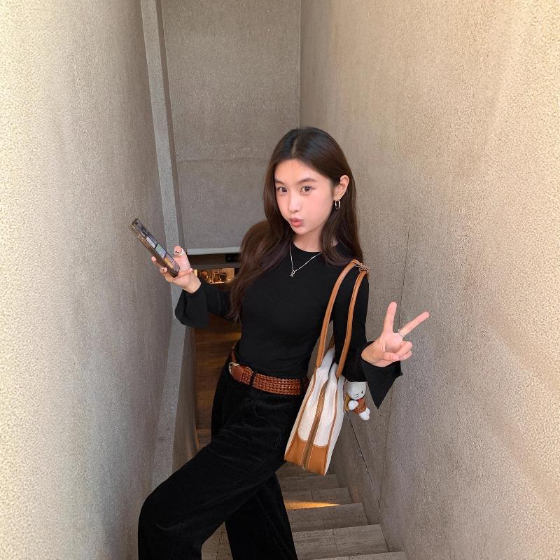 Herbst schwarzer Rundhals Strickpullover Damen Frühling schlank und dünn vielseitiges langärmeliges Unterhemd lässiges Oberteil