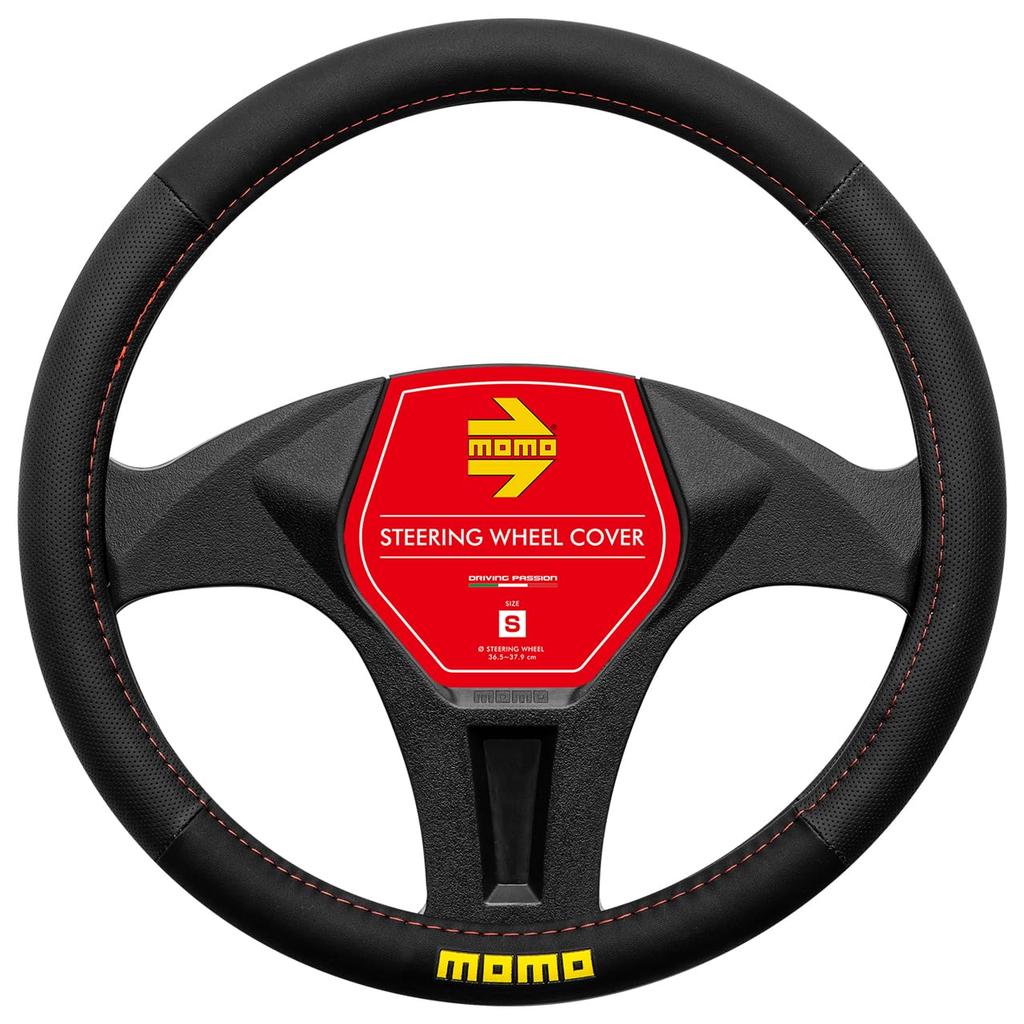 FARBE: SCHWARZ und Rote Naht - Gelbes MOMO-Logo (rot)