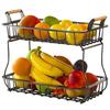 2-stöckiger Obstaufbewahrungskorb Arbeitsplatte für Küche, Gemüse-Obstkorbständer Abnehmbarer Metalldrahtkorb mit Holzgriff