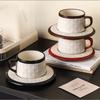 Neue Keramik geprägte Kaffeetasse und Untertasse Schwarz Weiß Keramik Latte Kaffeetasse Exquisite Nachmittagstee Blume Teetasse Milchbecher