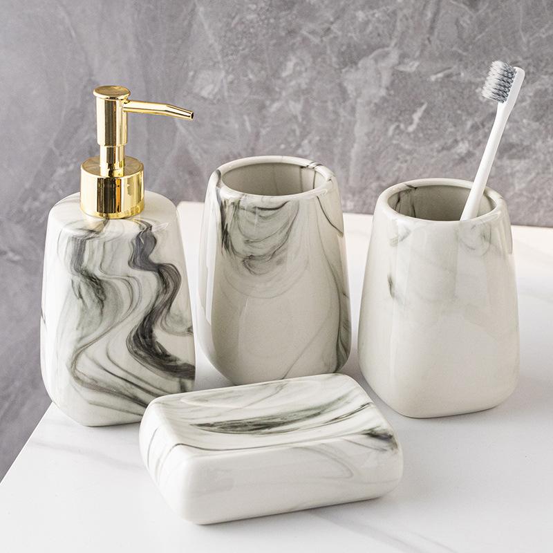 Kreative Tuschekeramik Lotionflasche Zahnbürstenbecher Seifenschale Badezimmerzubehör Moderner Seifenspender Mundspülbecher für Paare Geschenk