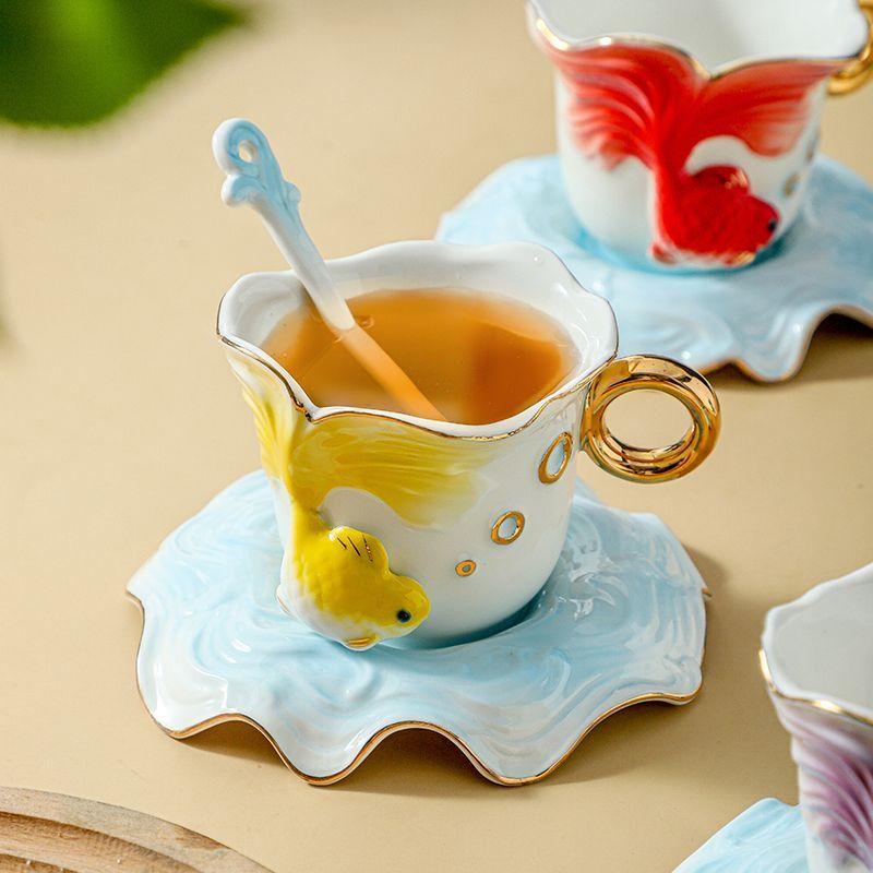 Creative Goldfish Ceramic Coffee Mug Exquisite Afternoon Camellia Tea Cup Three-Dimensional Goldfish Decorative Water Mug Gifts