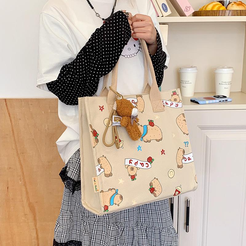 Koreanischer Lazy Style Capybara Canvas Tote & Crossbody Tasche