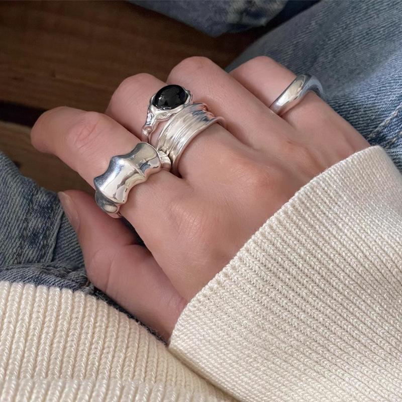 Heavy-duty Wide Edge Irregular Ring Women's Niche Fashion Design Senior Sense 100% Match Adjustable Open Party & Daily Ring