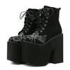 Gdgydh Damenstiefel Goth Spinnennetz Bestickte Schuhe Hoher Absatz Stiefeletten Hohe Plateauschuhe Qualität Mode Punk Klobige Absätze Reißverschluss